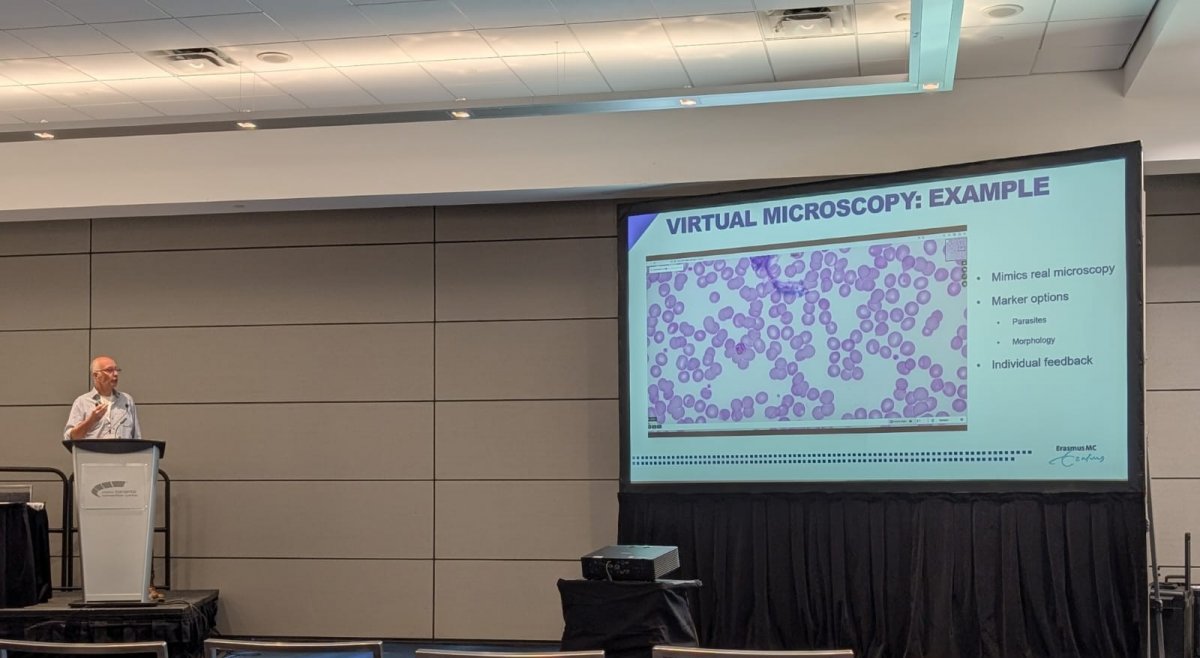 Prof. Jaap van Hellemond (Erasmus MC University Medical Center Rotterdam, the Netherlands) presented new applications of virtual microscopy in the session “New Diagnostics and Surveillance of Parasitic Diseases.” Beyond AI-assisted microscopic detection of parasites in stool samples, virtual microscopy is increasingly being used in External Quality Assessment (EQA) schemes and in microscopist training. Recent advances in the development of the virtual learning tool (Work Package 5 of the eWHORM programme) were also showcased.